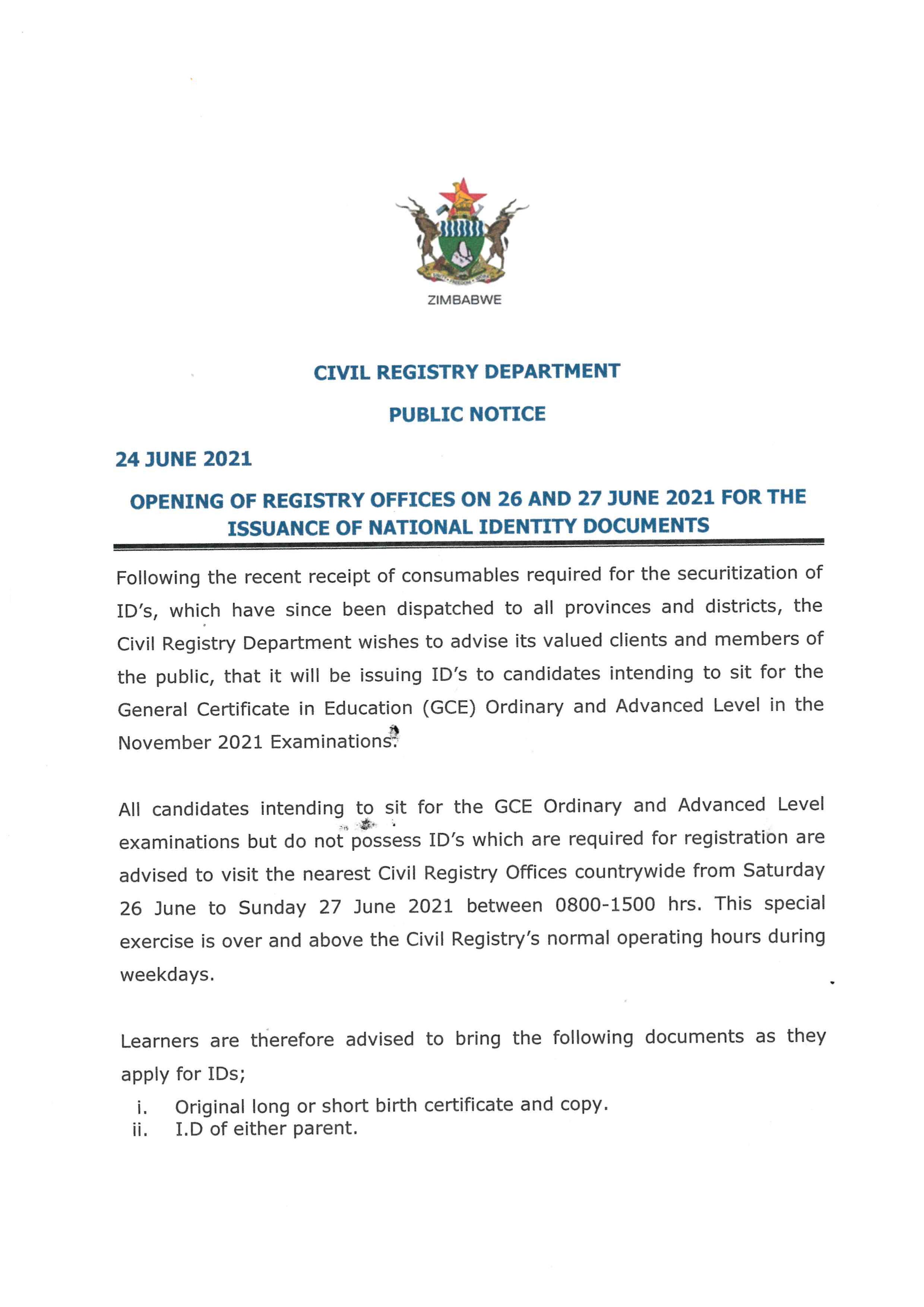 تويتر Ministry Of Home Affairs And Cultural Heritage على تويتر Learners Are Therefore Advised To Bring The Following Documents As They Apply For Ids I Original Long Or Short Birth Certificate And